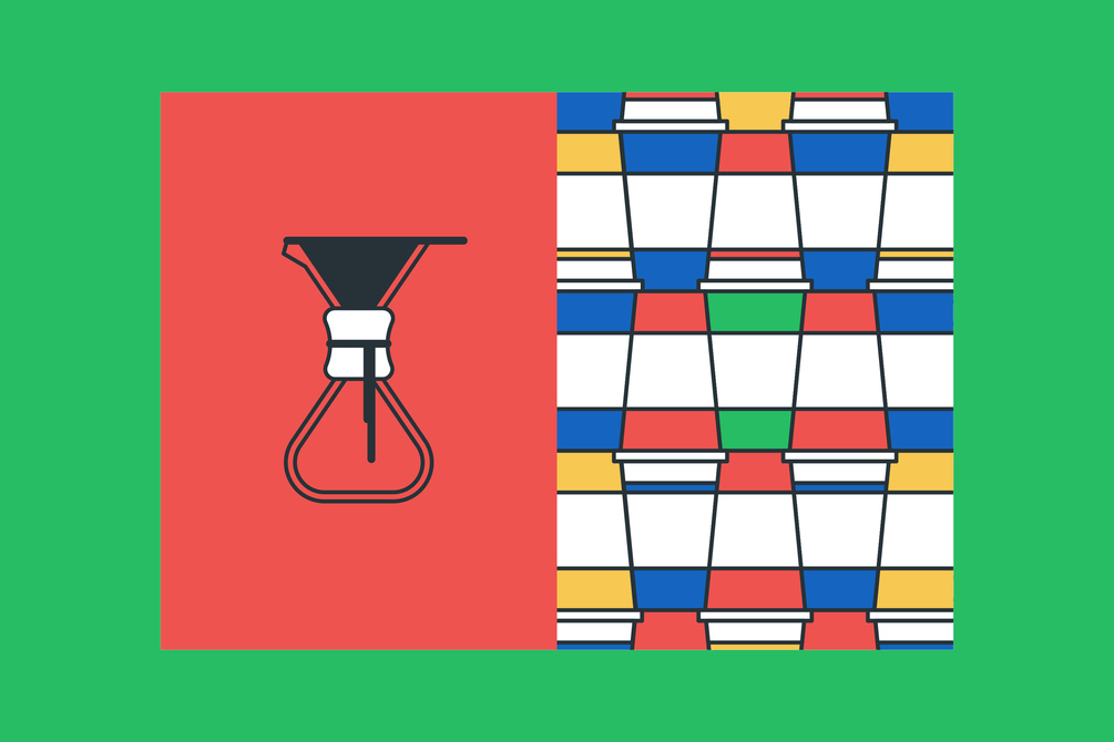 Icons of Coffee is a collection of illustrations using a minimalist style, and a bright colour palette. Featuring my interpretation of recognisable coffee making equipment, abstract coffee themed structures and coffee shops.